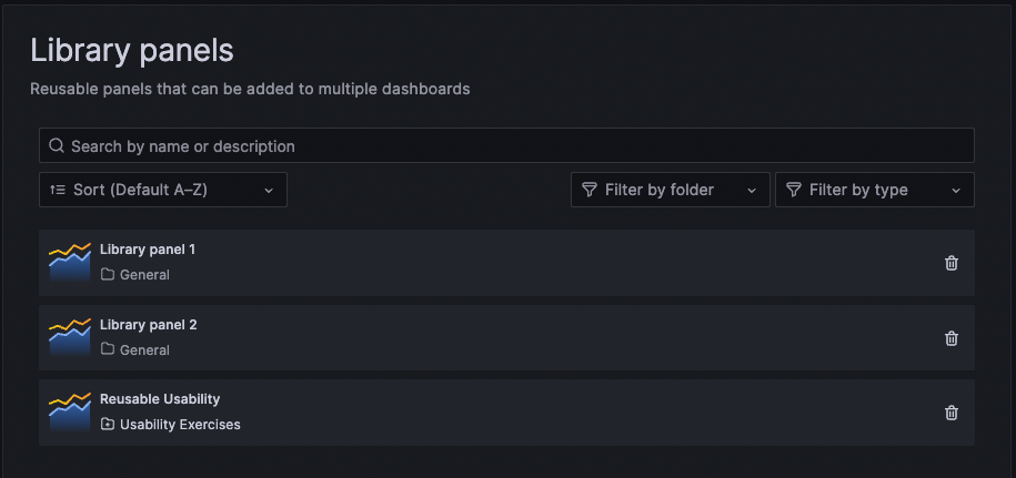 1. Click Dashboards > Library panels in the main menu.